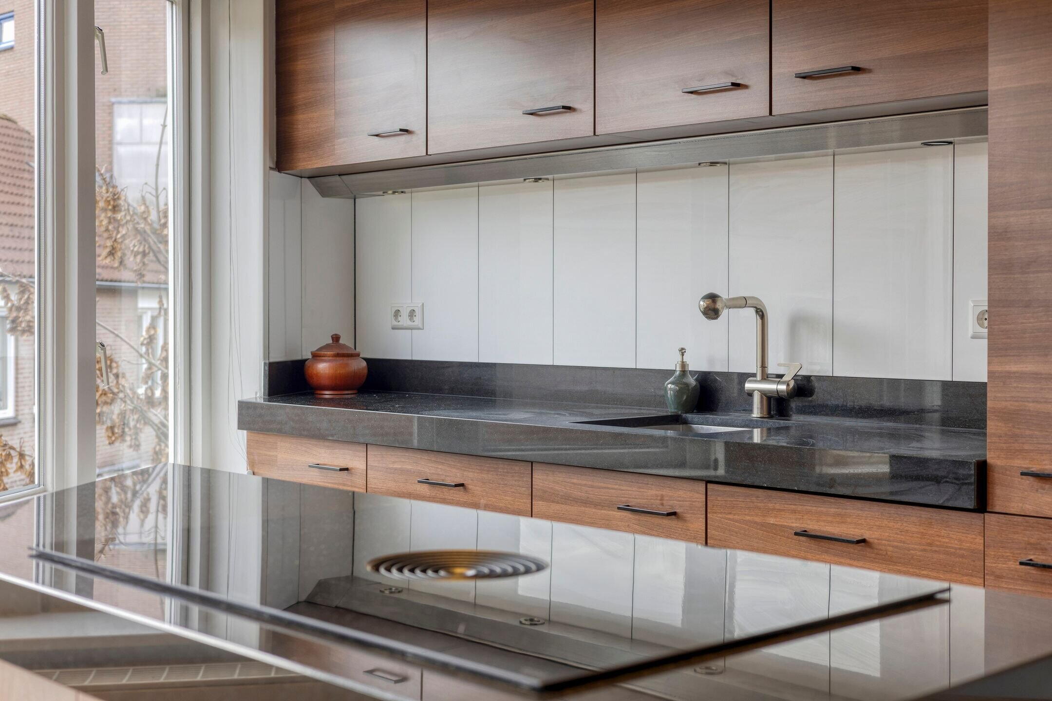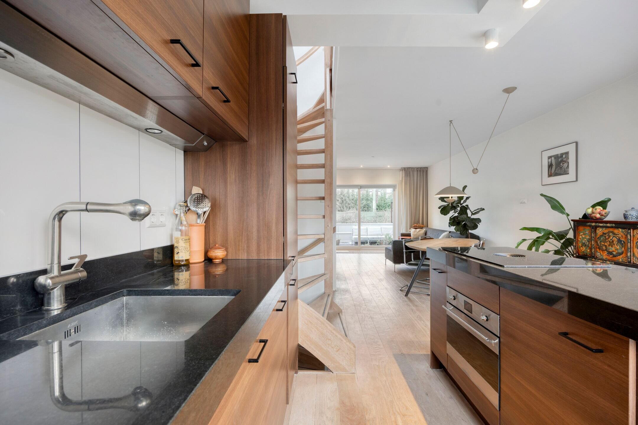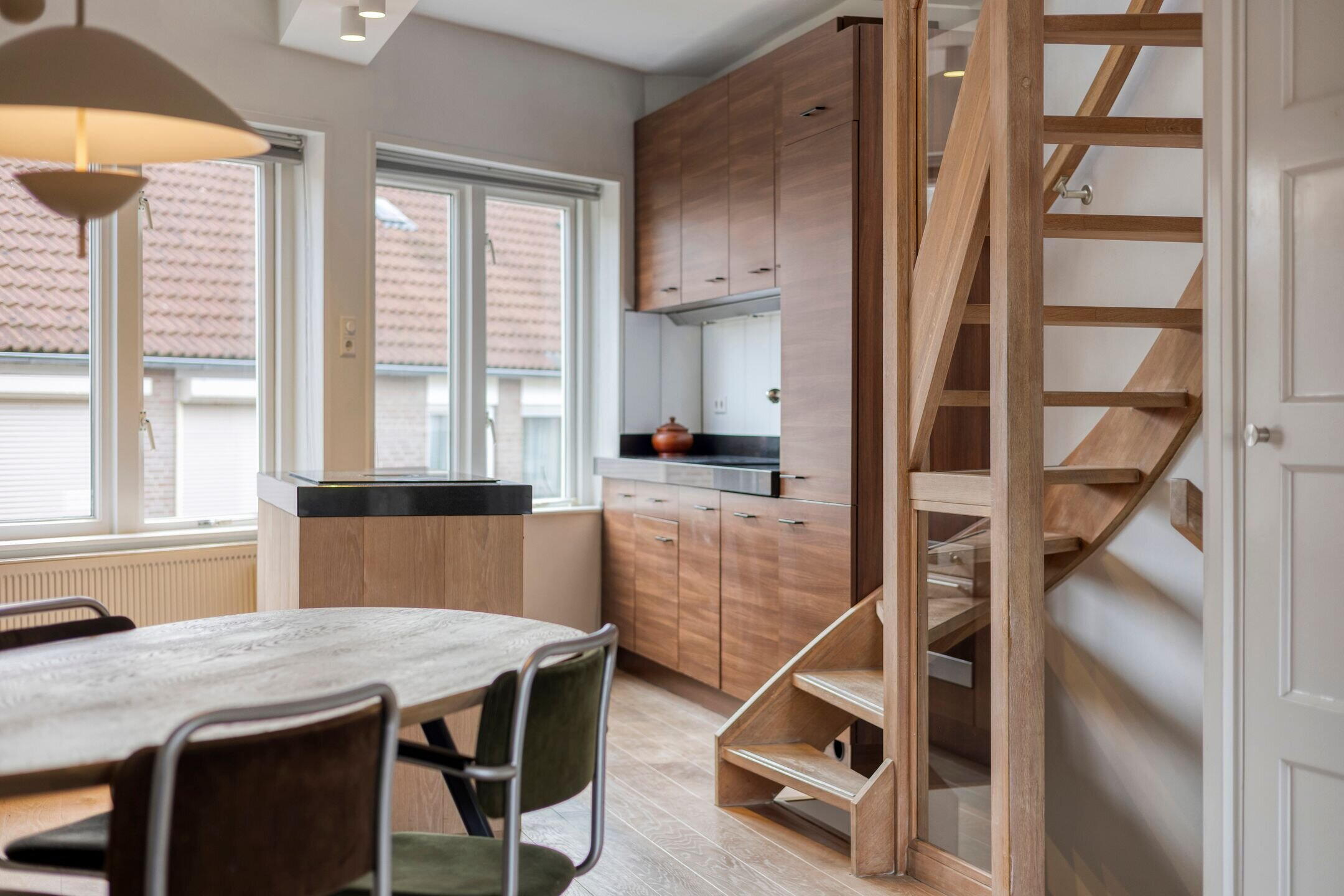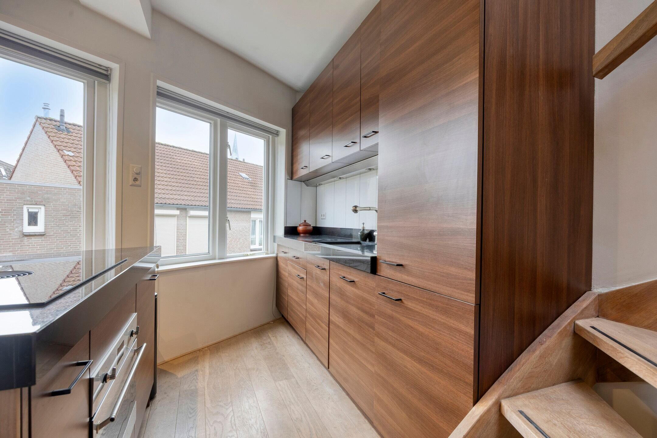 Aan de voorzijde bevindt zich de open keuken met kookeiland, uitgerust met een nieuwe BORA-inductiekookplaat. Op deze verdieping is tevens een berging in de vorm van een inbouwkast aanwezig.