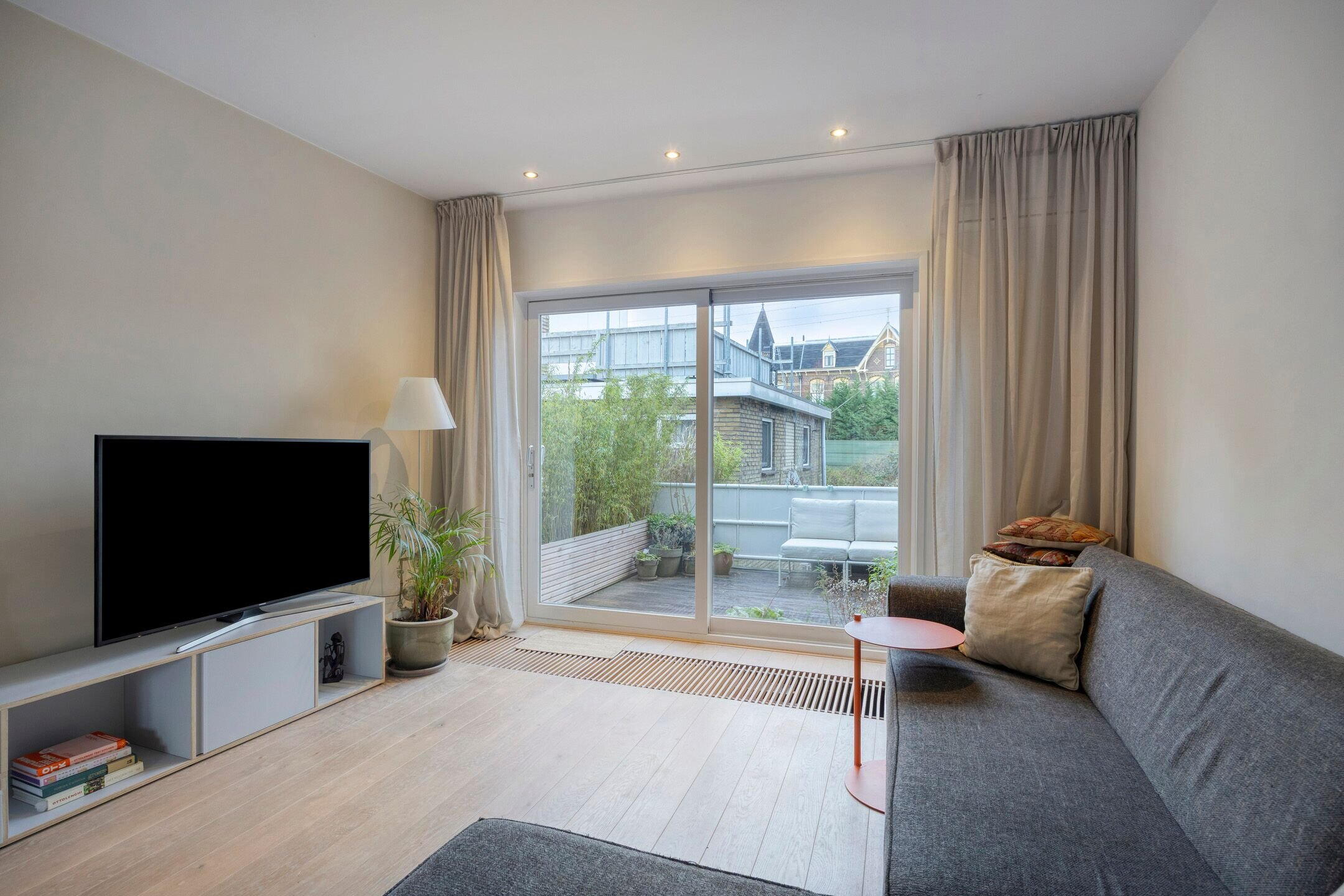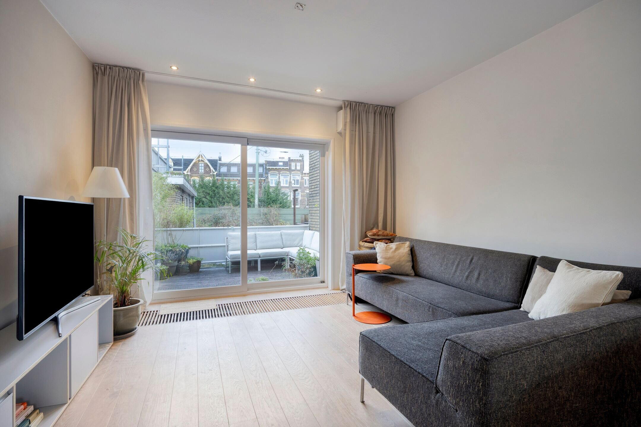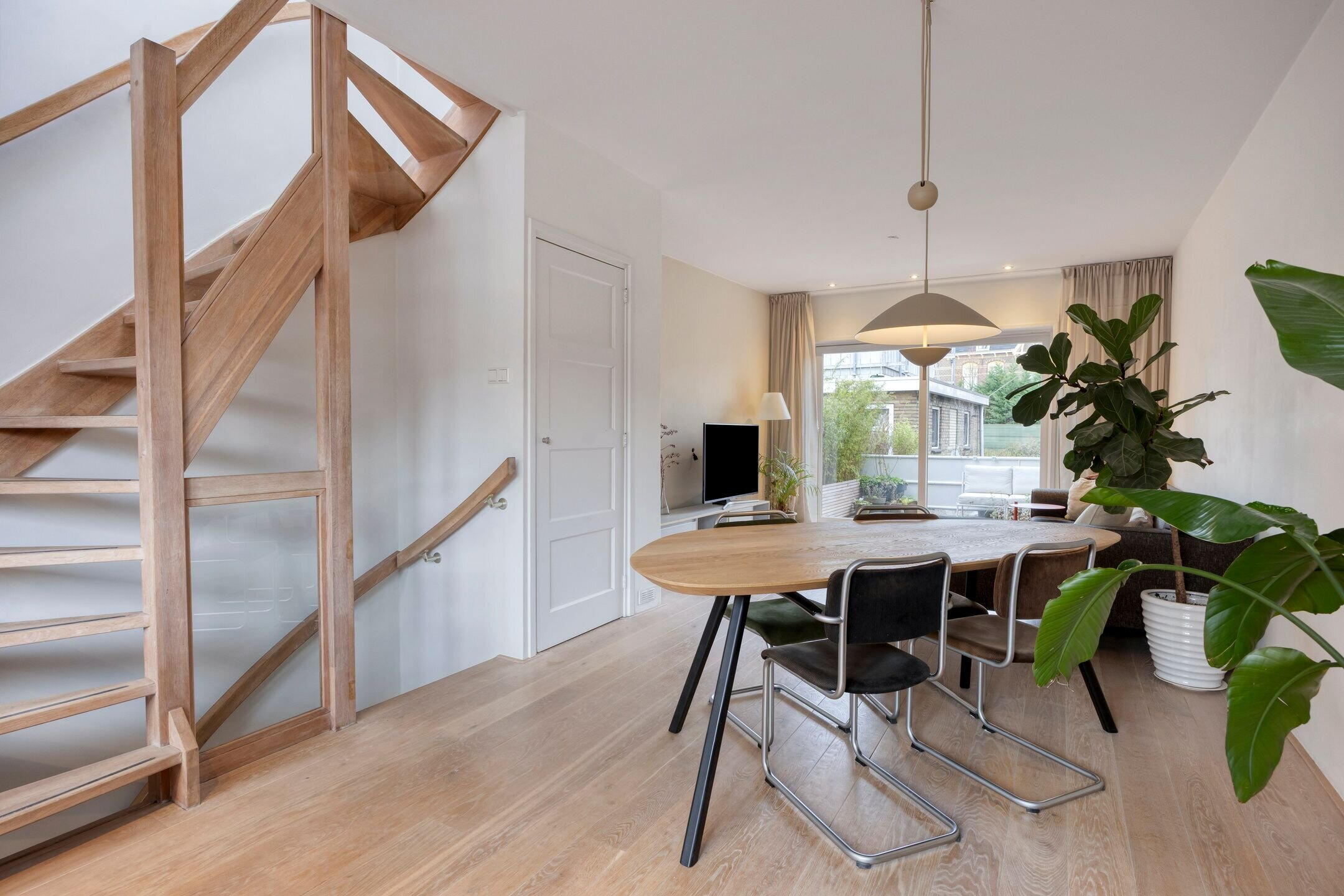 De woonverdieping is licht en praktisch ingedeeld met aan de achterzijde een schuifpui naar het ruime terras. Dit vormt een prettige buitenruimte met voldoende plek voor een zit- of eethoek.