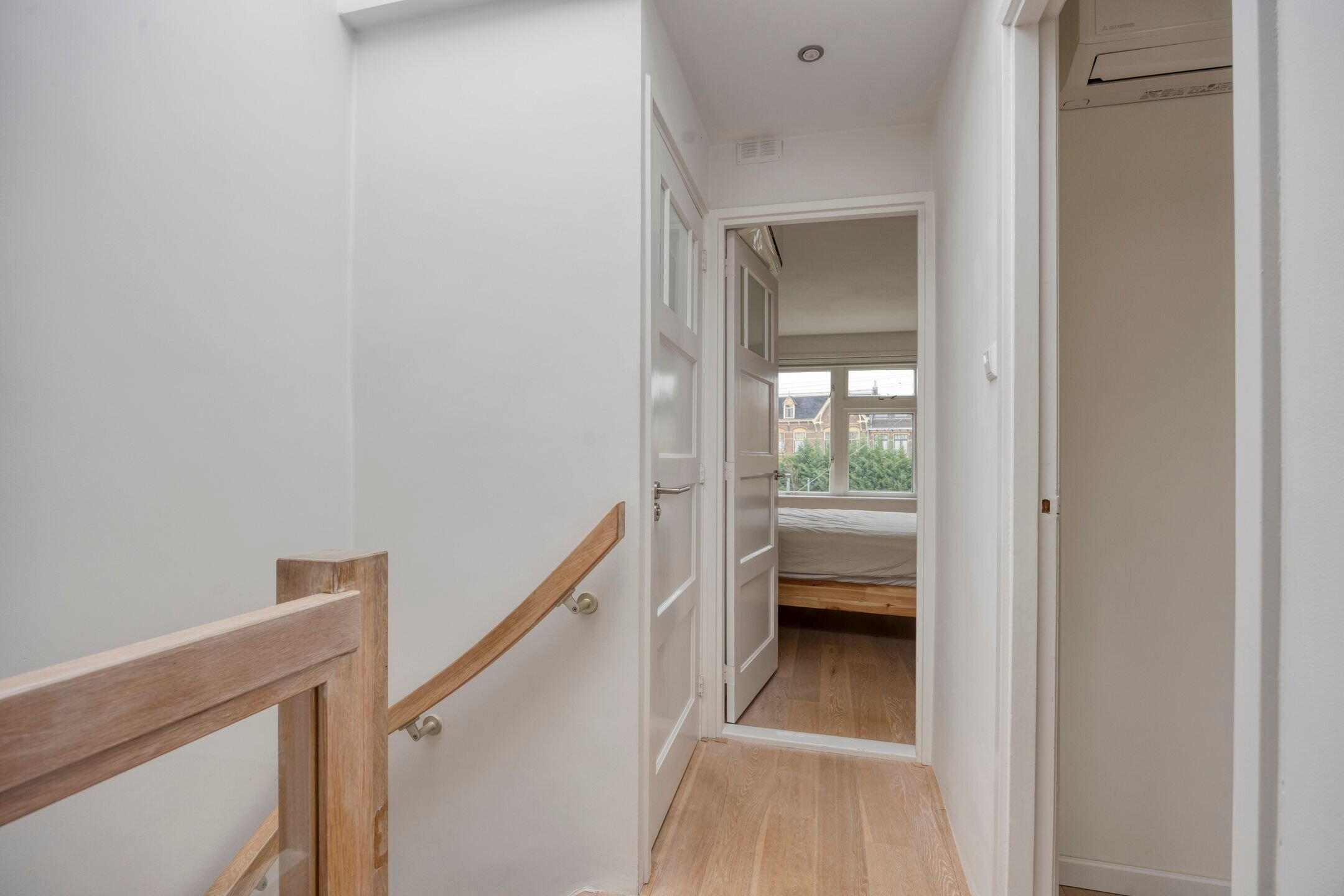 Op de bovenste verdieping bevinden zich twee ruime slaapkamers, beide voorzien van een inbouwkast en airco.